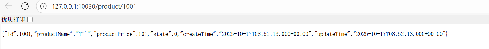 此时的 url 符合我们刚刚在 yml 文件中配置的 Path 断言:/product/** 规则,路由转发到 product-service:http://product-service/product/1001