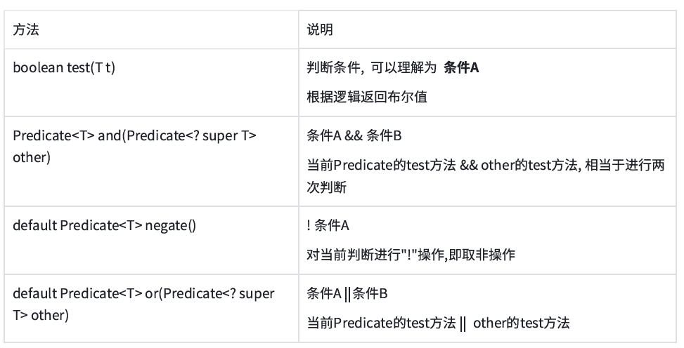 Predicate<String> lengthCheck = s -> s.length() > 4;// 2. 创建一个 "条件B" (Predicate B)