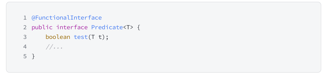 Predicate 是 Java 8 提供的一个函数式编程接口,接收一个参数返回一个布尔值,用于条件过滤,请求参数的校验。