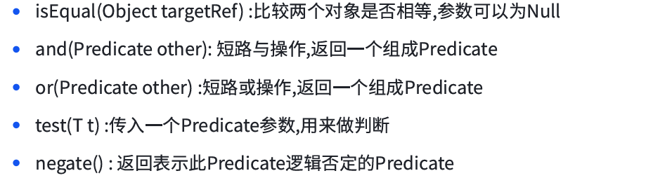 签名:static <T> Predicate<T> isEqual(Object targetRef)