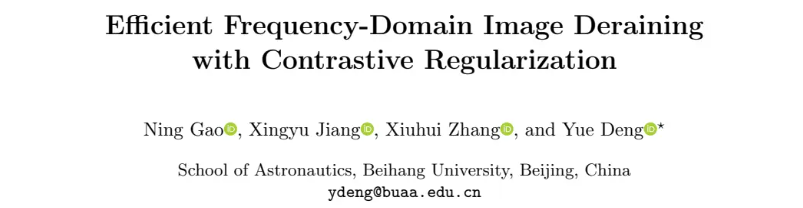 标题: Efficient Frequency-Domain Image Deraining with Contrastive Regularization (基于对比正则化的高效频域图像去雨)
