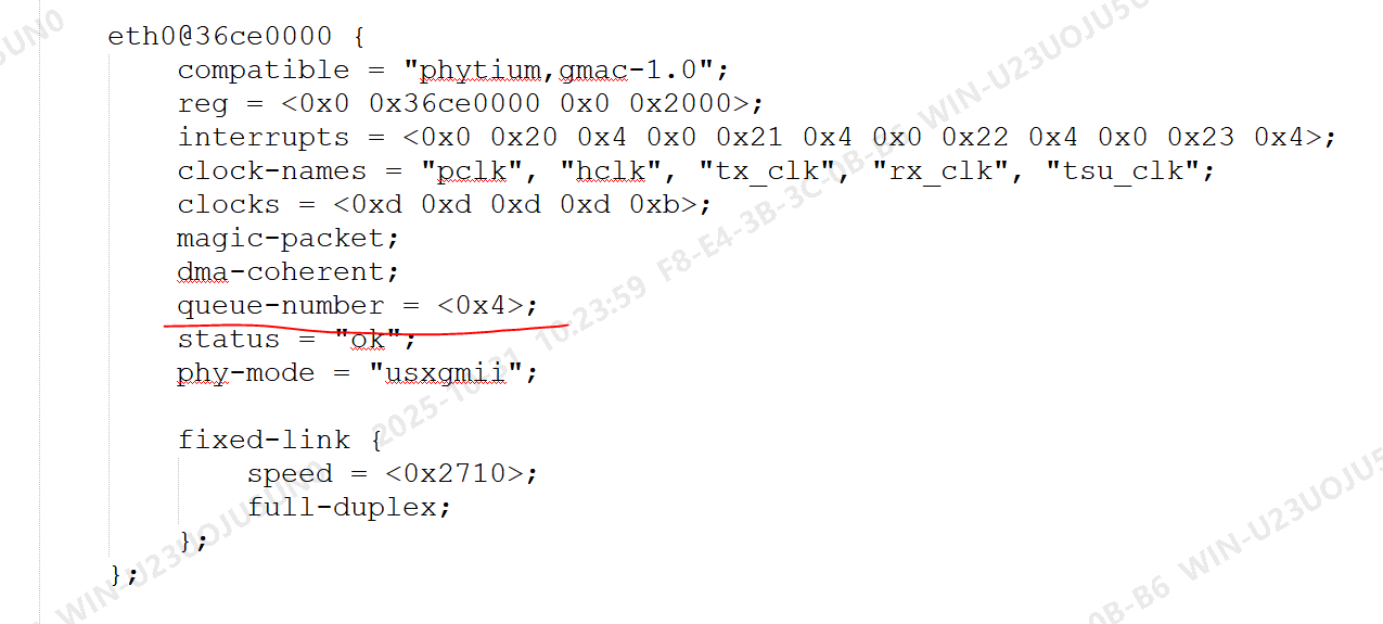 注意节点中的queue-number只能配置为4,因为D3000自带的网卡最多只支持4个队列。