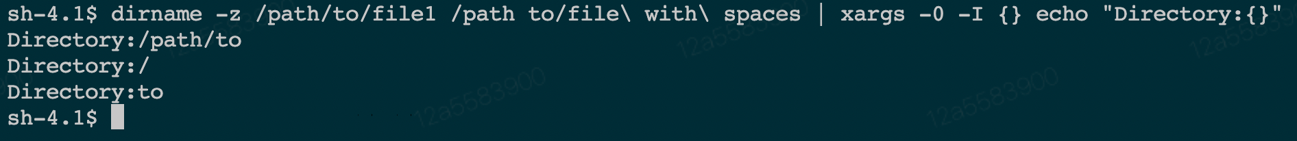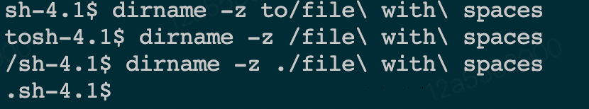 默认情况下,dirname 的输出结果是用换行符分隔的。使用 -z 选项可以改为用 NUL 字符 分隔。