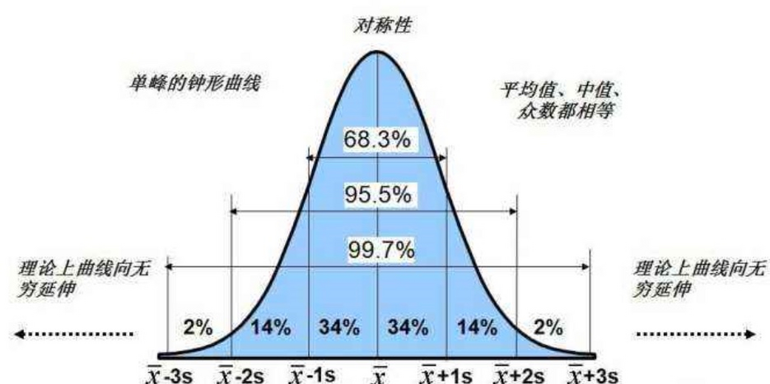 2σ (两个标准差): 这个区域包含了大约95%的数据。 95%啊,这可是相当高的比例了! 这意味着绝大多数数据都集中在这个范围内。在上面的