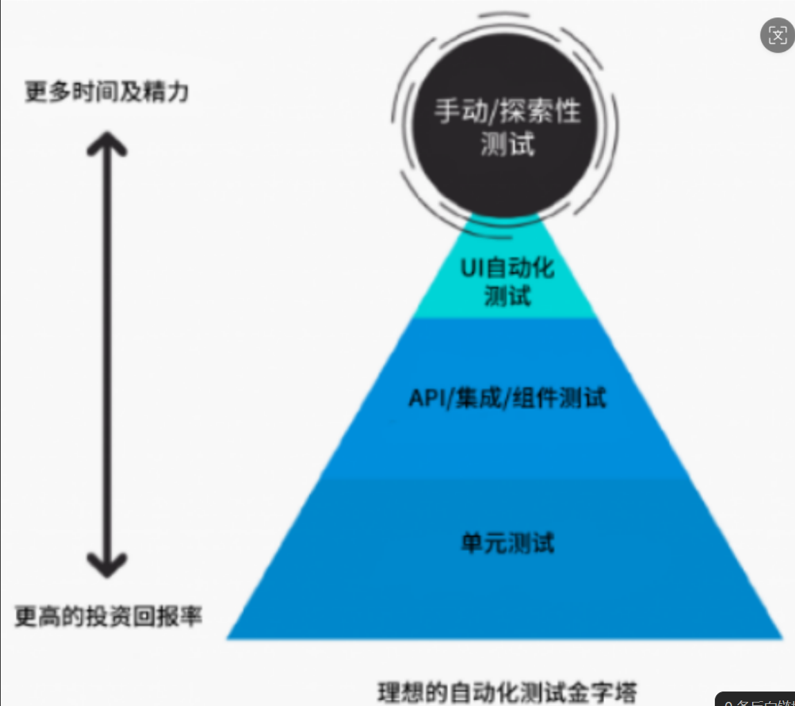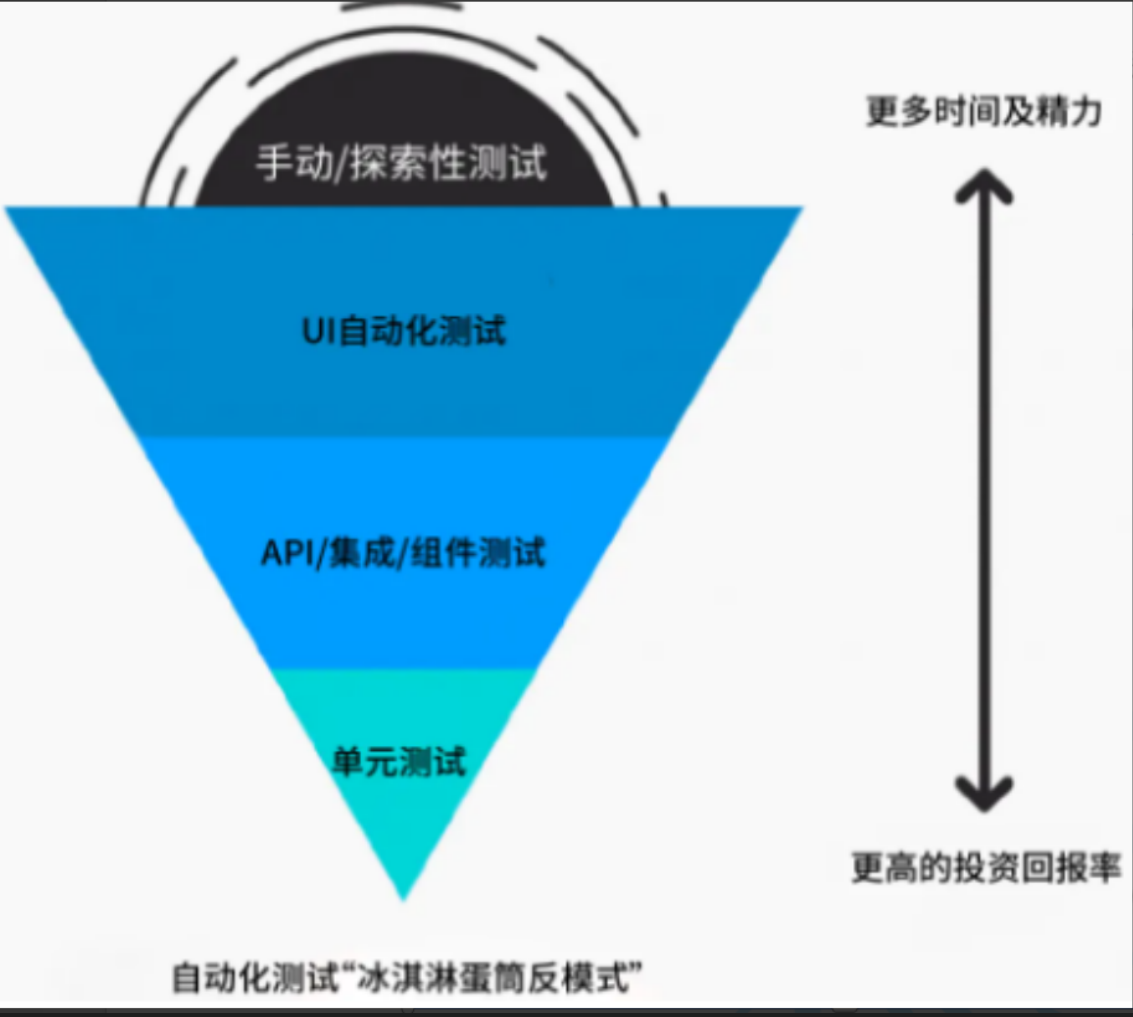 理想的⾃动化测试⾦字塔表达了⾃动化测试的理想情况,利⽤较少的时间和精⼒在单元测试上就能够发现更多有效的问题。