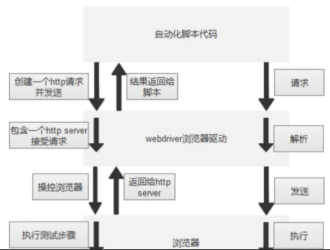5. 驱动收到请求并对请求进⾏解析,转成浏览器能够解析的脚本并发送给浏览器,浏览器通过请求的内容执⾏对应动作
