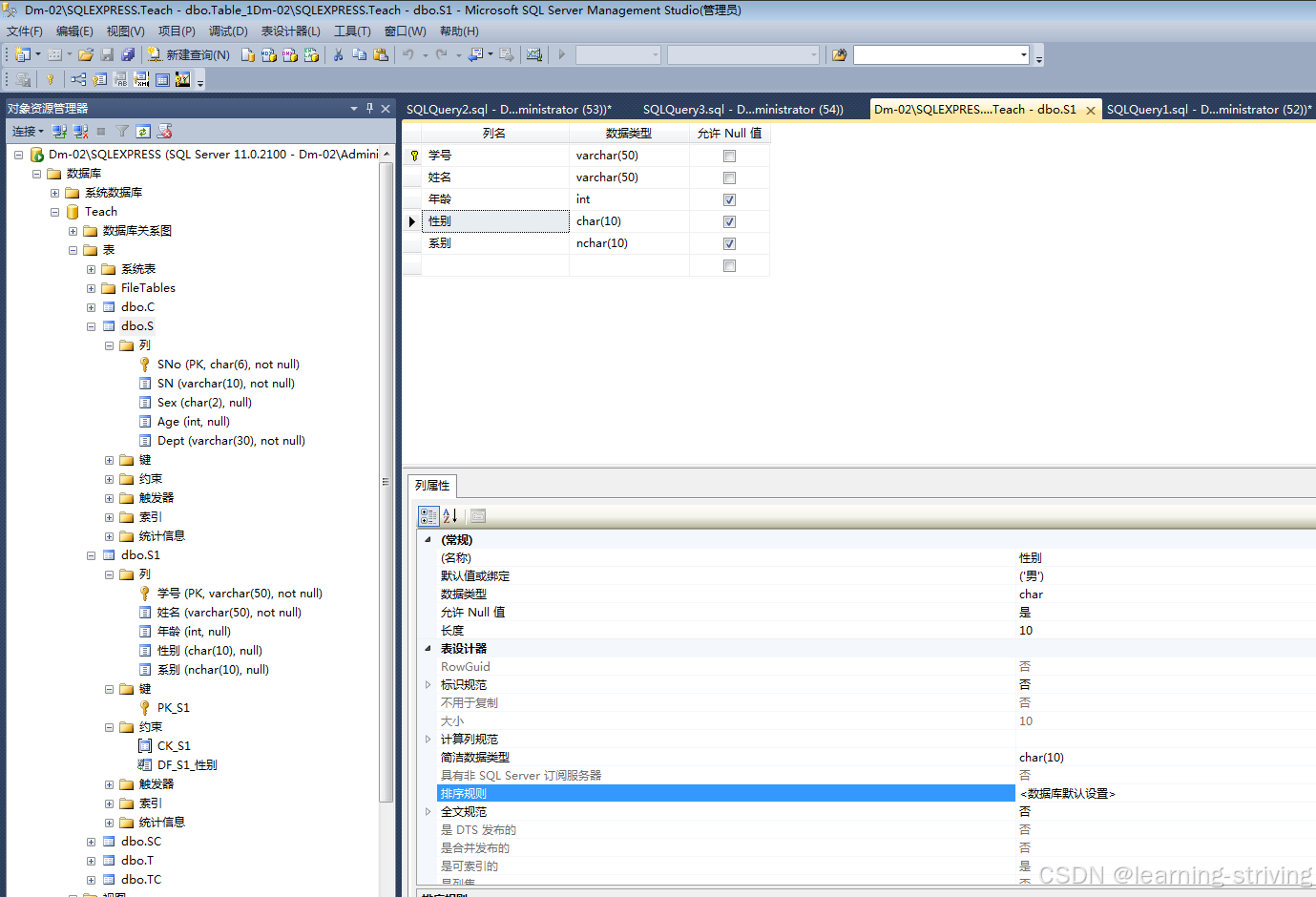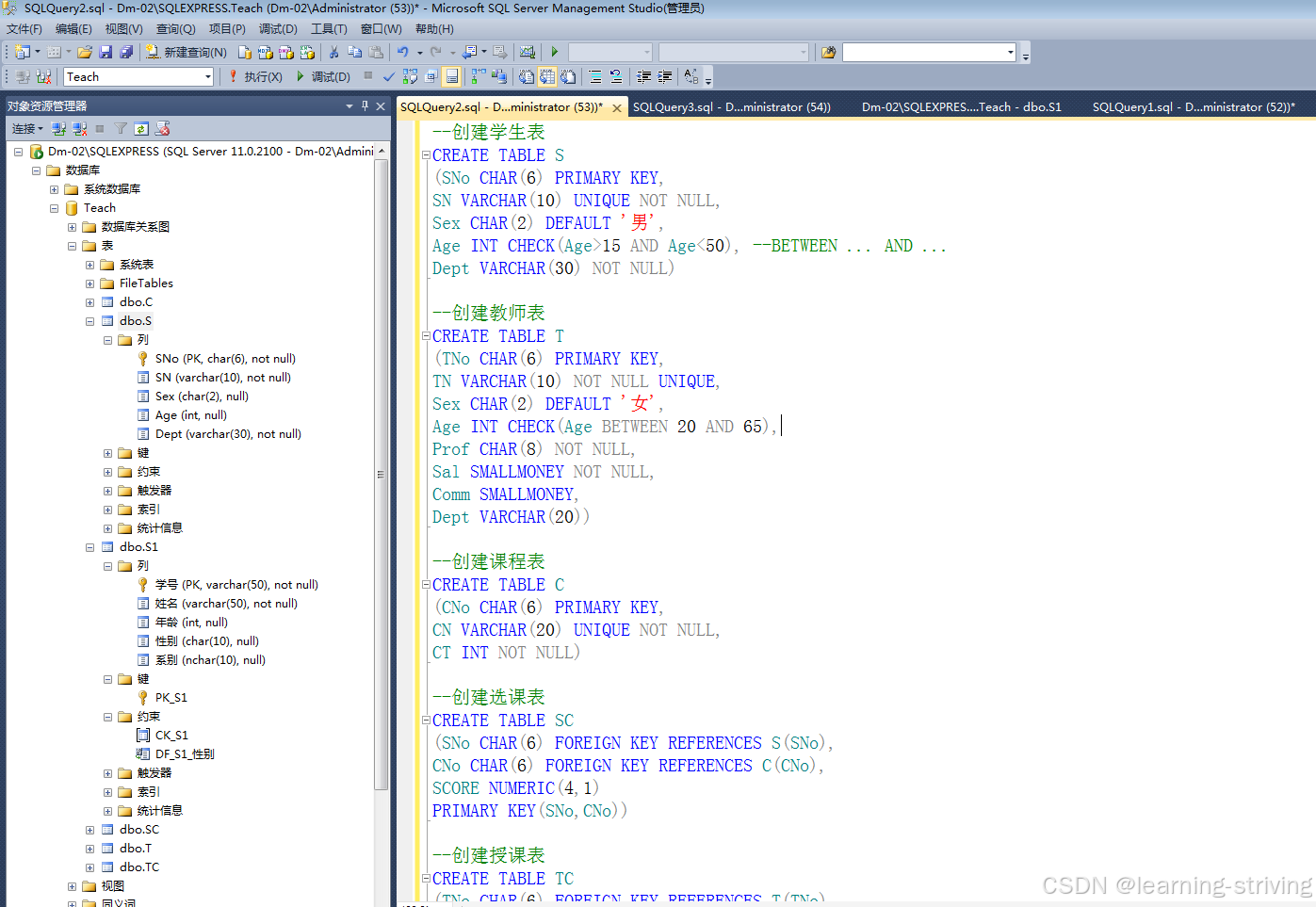 PRIMARY KEY(SNo,CNo))--创建授课表
