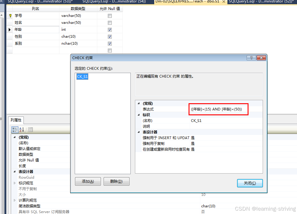 Age INT CHECK(Age>15 AND Age<50), --BETWEEN ... AND ...