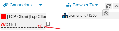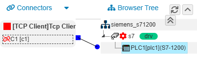 完成之后,就完成了通道节点和PLC设备节点的添加。然后鼠标左键点击接入“c1”的连接端子到这个设备“PLC1”的连接端子上方,然后松开左键,建立接入到这个设备的关联: