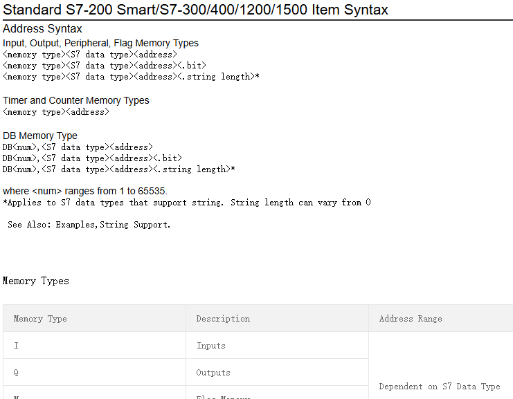 标签名称必须符合变量名称规范;地址区域填写的地址格式和西门子PLC要求的规范一致。如果不确定地址和数据类型是否合理,可以点击“自动检查地址按钮”。IOT-Tree会根据当前填写的地址内容进行有效性判断和规范格式,并自动设置数据类型。当然,你还可以点击帮助查看支持的PLC地址格式和范围。
