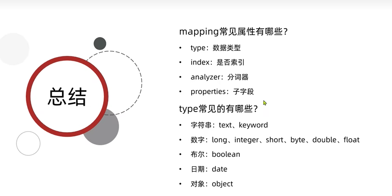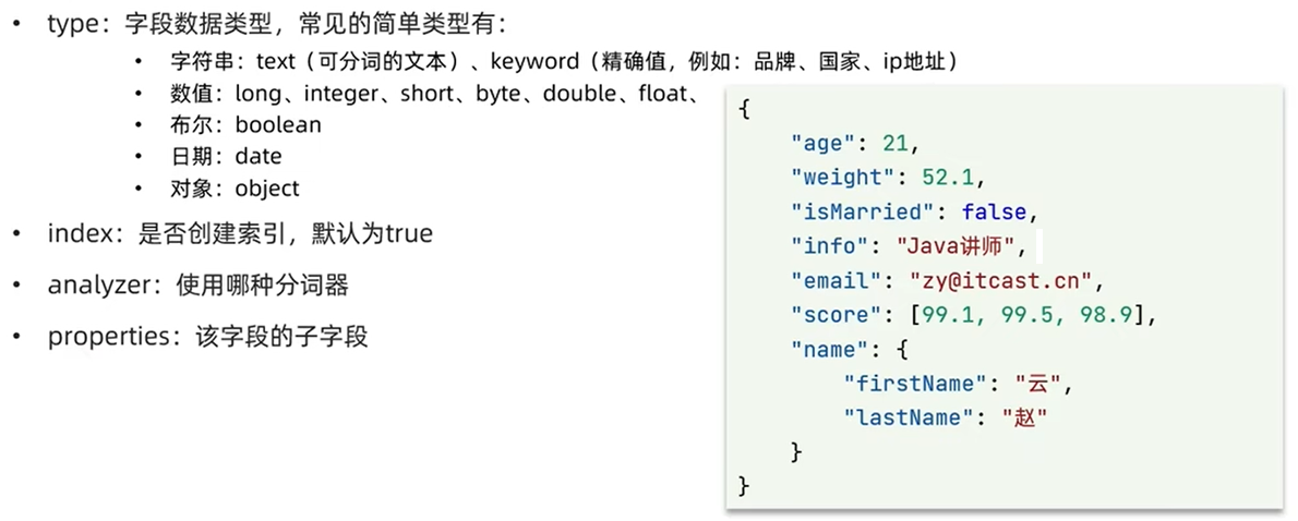 mapping是对索引中文档的约束,常见的mapping属性包括: