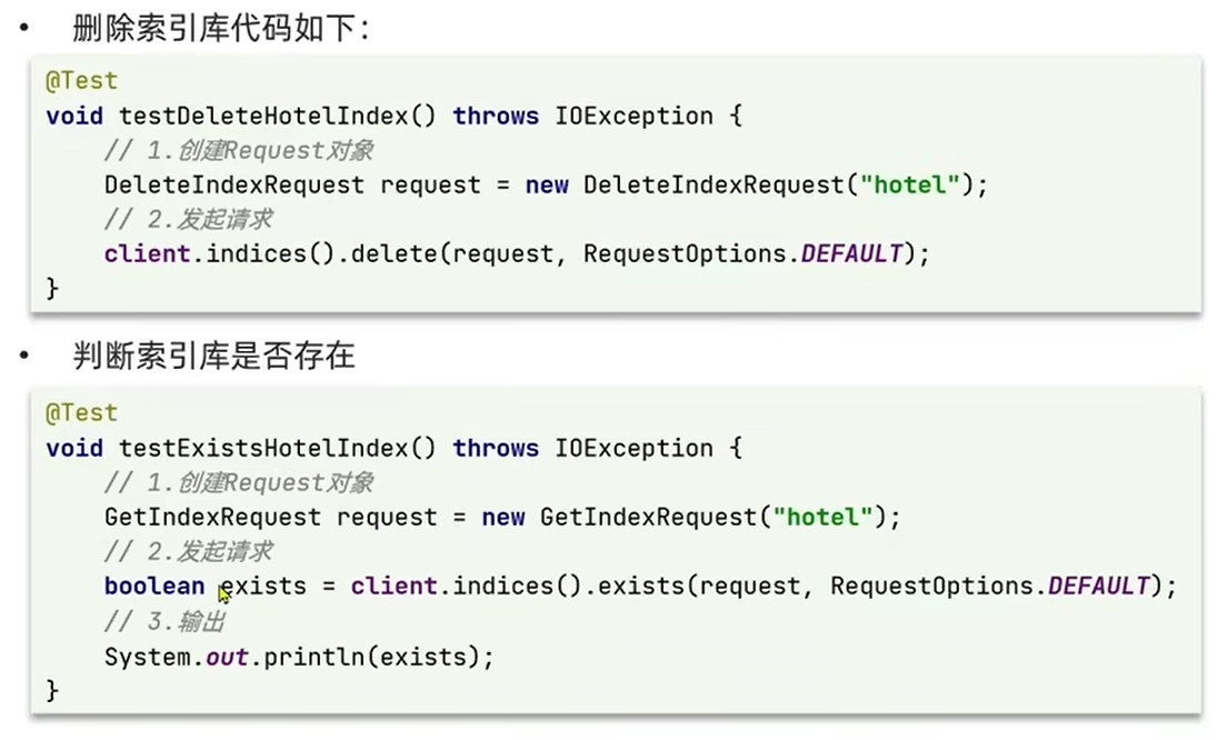 2.5、删除索引库、判断索引库是否存在