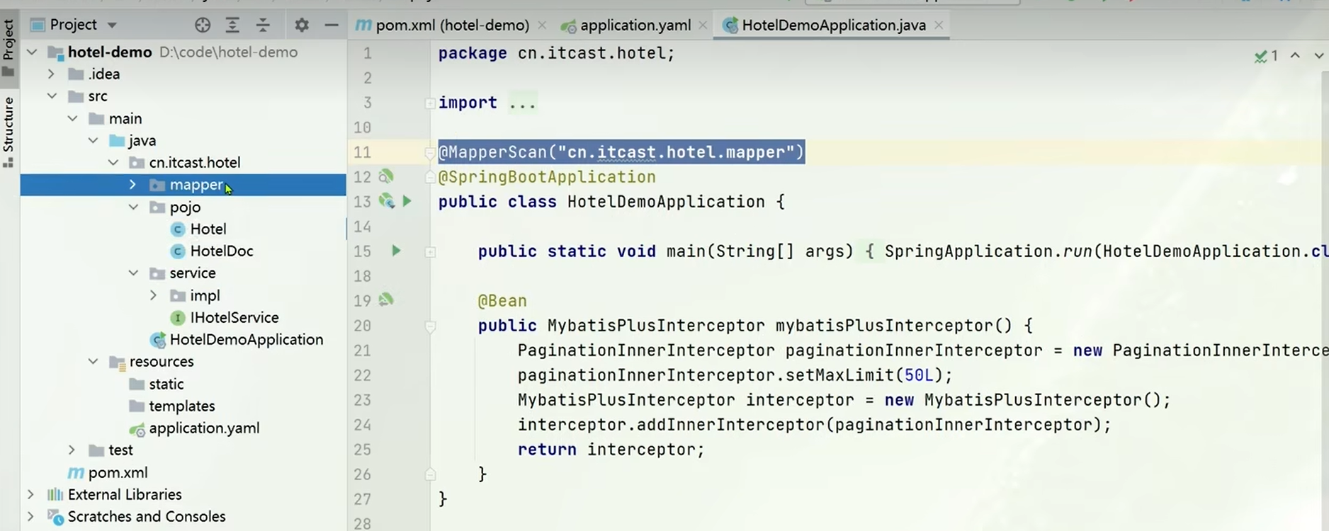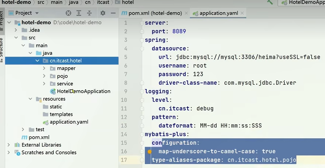 - 导入hotel-demo项目到idea中,文件在附件中