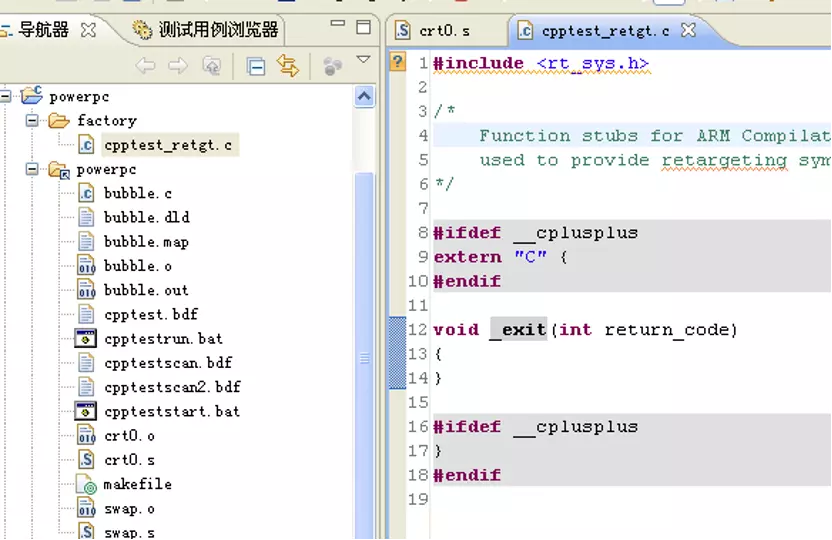 Test executable exit point 设置程序执行结束的退出函数名。这里默认不修改即可,如果在执行单元测试的过程中出错说没有这个函数名称,可以在项目中添加一个如下的简单函数