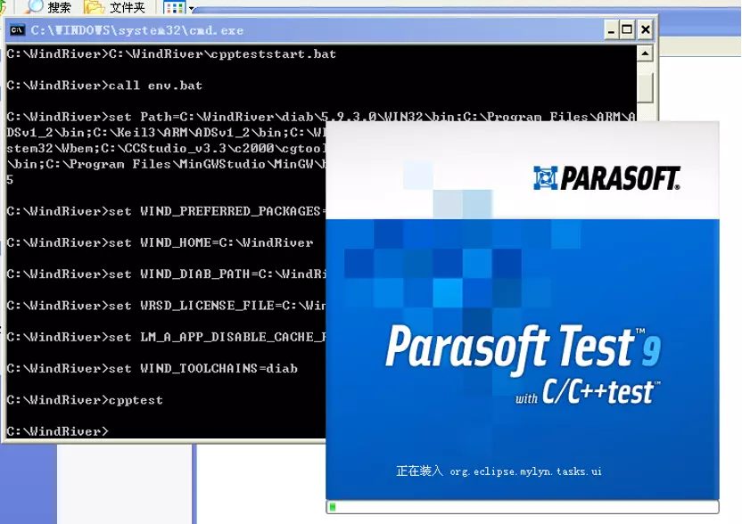 在启动C++test之前首先运行编译器的环境设置batch脚本,C:\WindRiver\env.bat