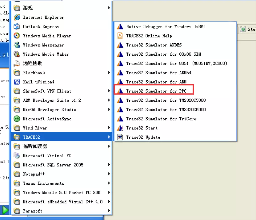 在执行单元测试的时候则需要根据调试器的情况做如下配置。首先明确使用的Trace32的调试器是Trace32 Simulator for PPC(PowerPC)