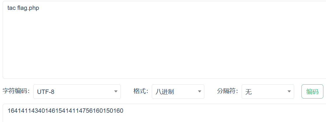 - 过滤了字母,没有过滤数字,可以使用数字编码(八进制)来进行绕过