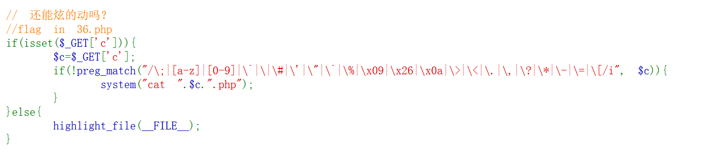 这里提示flag在36.php,但是这里同样过滤了数字,访问$c.php。我们要获得36这个数字