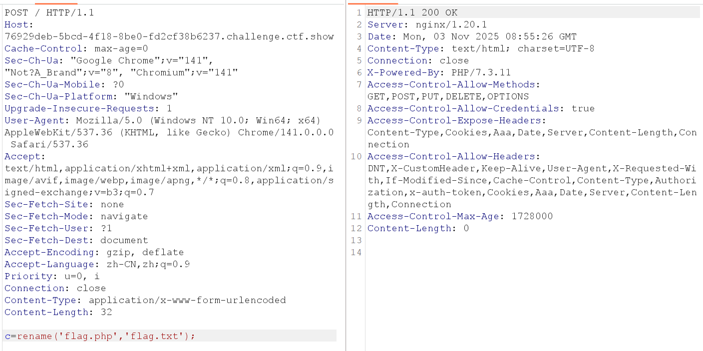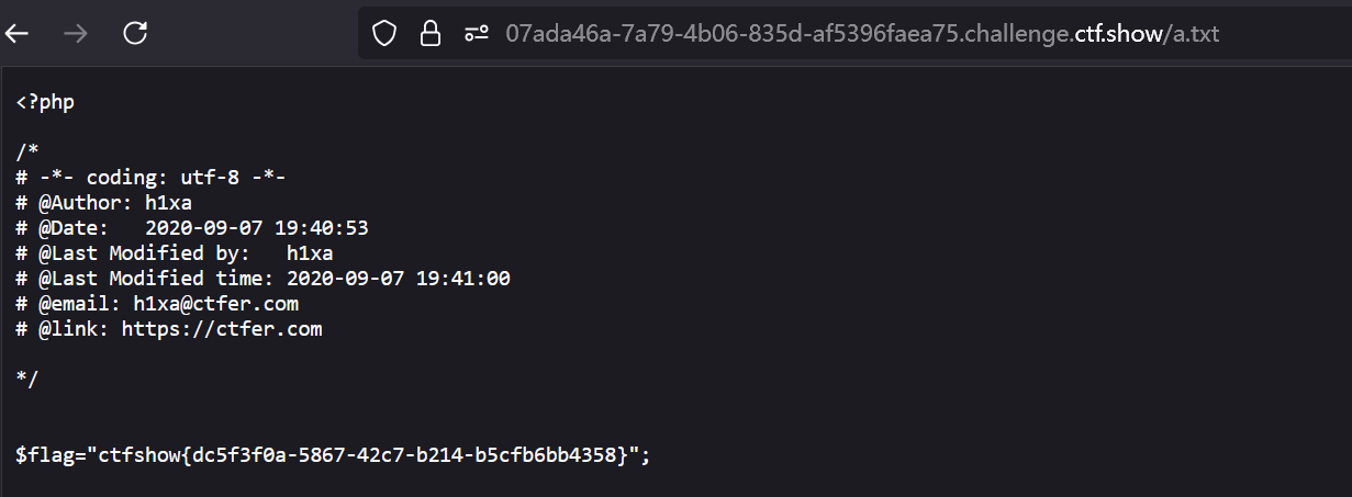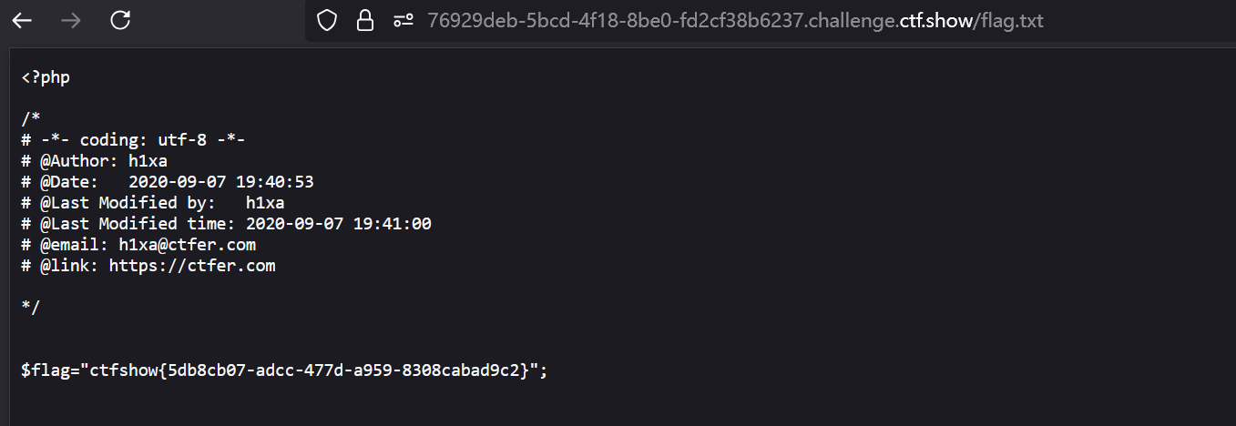 这里还可以使用之前说过的,copy、rename等文件操作的方法,将flag.php变成flag.txt,即可直接访问。