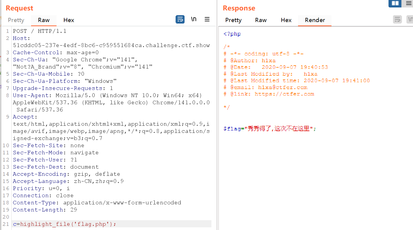 前面web40有讲过highlight_file和show_source这两个函数能够显示源码。