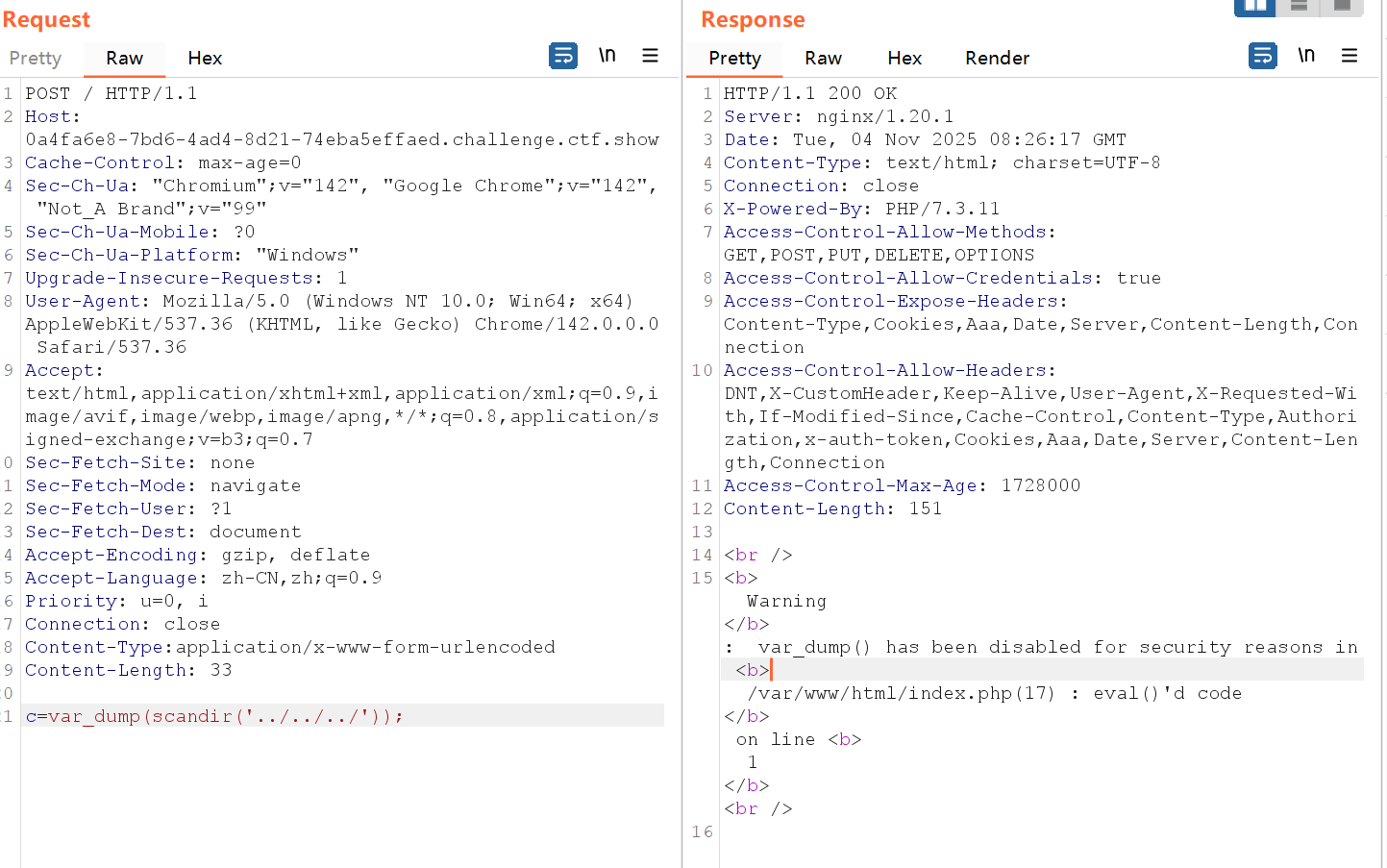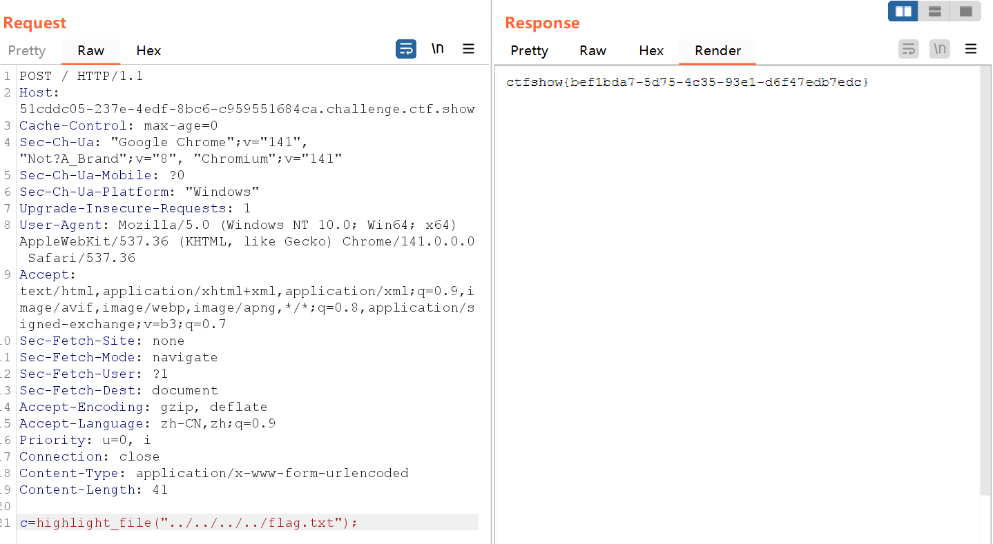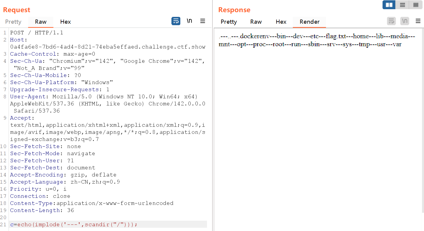 查看flag.txt文件,得到flag。注意scandir返回的是当前文件所在目录的文件,所以使用highlight_file查看时需要再往前一个目录
