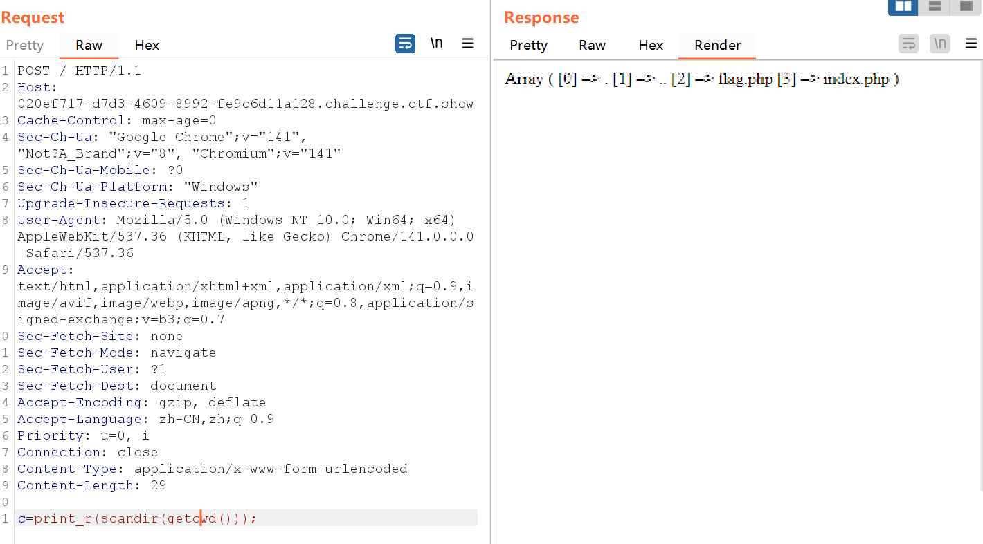 这里system不能执行使用ls命令,那我们可以使用scandir去扫描,获取目录有哪些文件(虽然默认都是flag.php),更重要的是学会解题的思路。