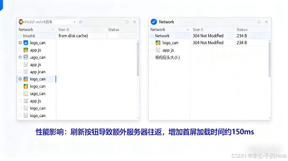 | 潜在问题 | 可能加载 stale 数据(旧缓存) | 服务器负载稍高(验证请求) | 带宽浪费,慢加载 |