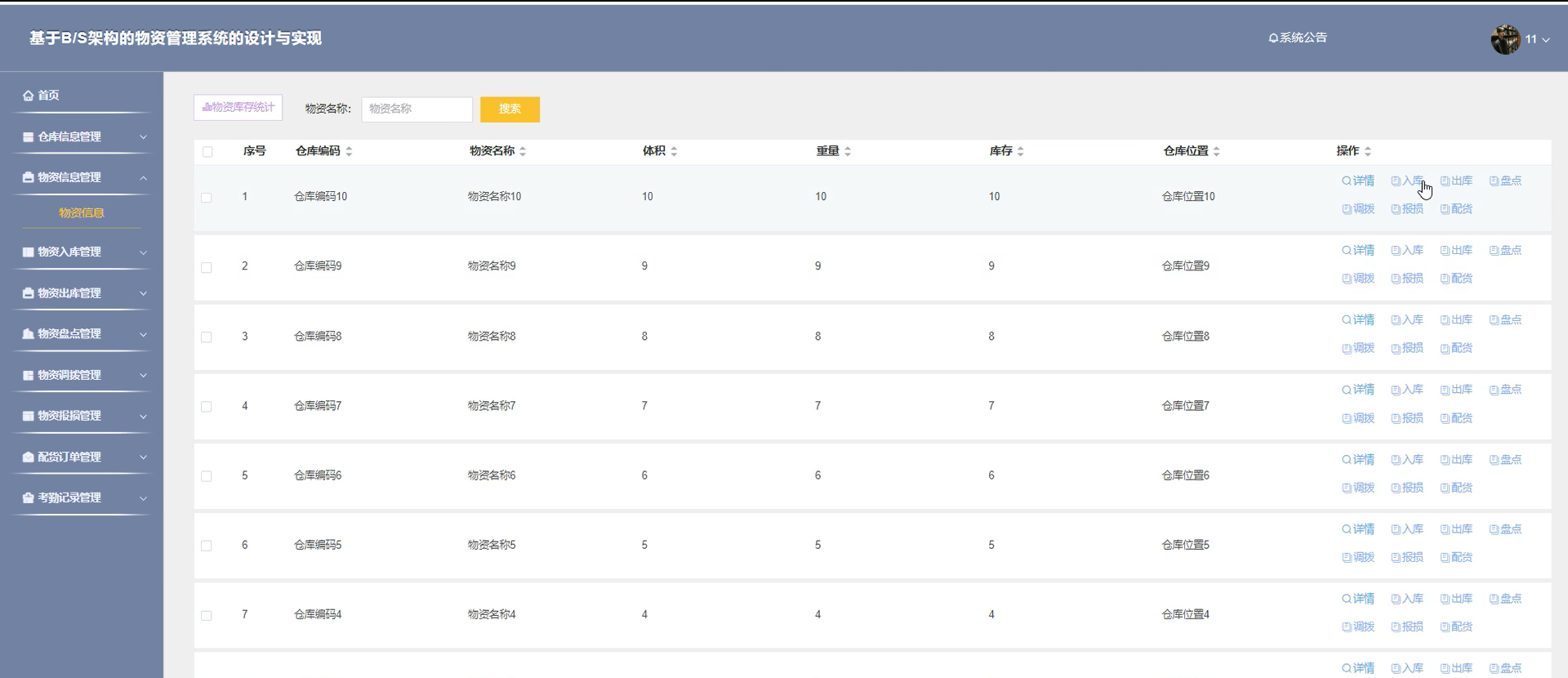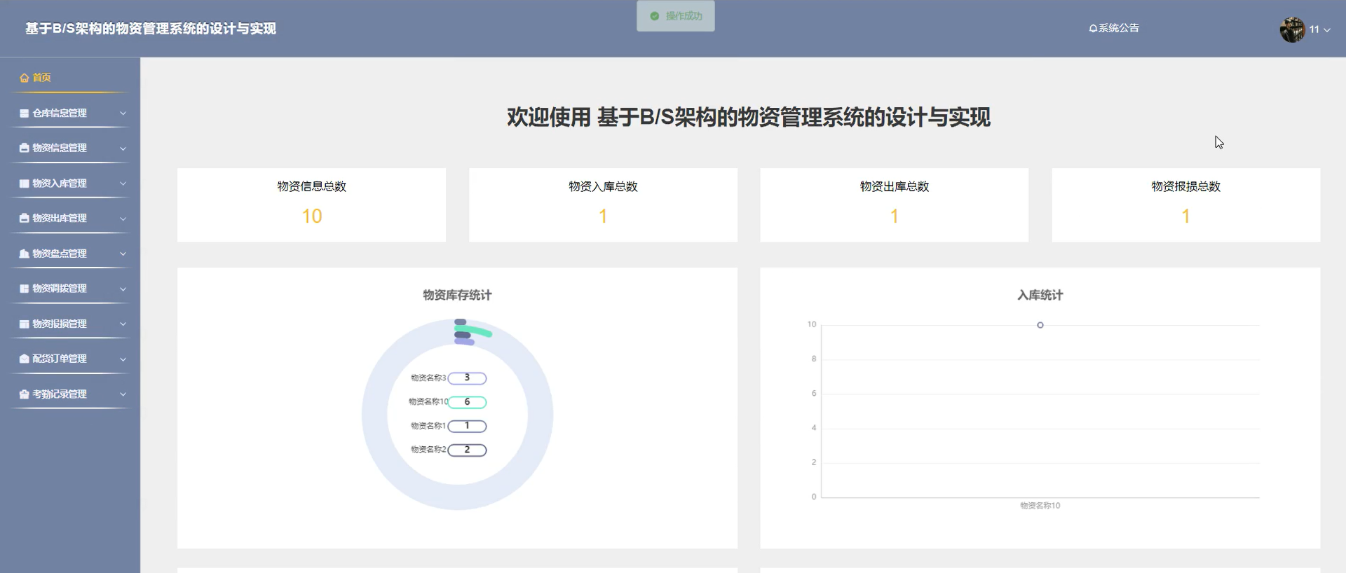 - 模块交互:各模块通过数据库实现数据互通,例如 “物资入库” 操作会自动更新 “物资信息” 中的库存数据,“物资盘点” 可校验入库 / 出库数据准确性。