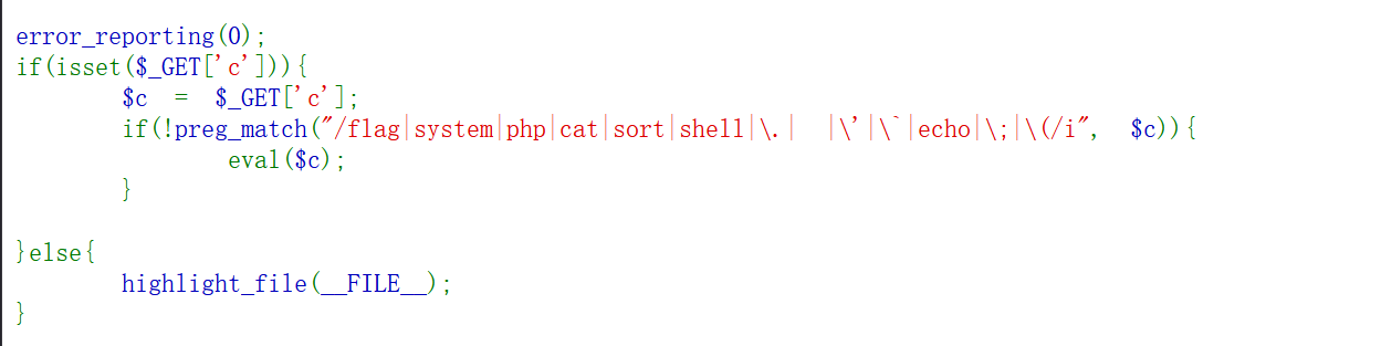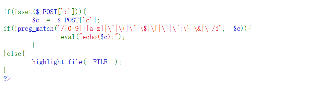 这里关键增加了反引号和括号的过滤,所以这里不可以使用反引号以及exec这样的函数进行命令执行。