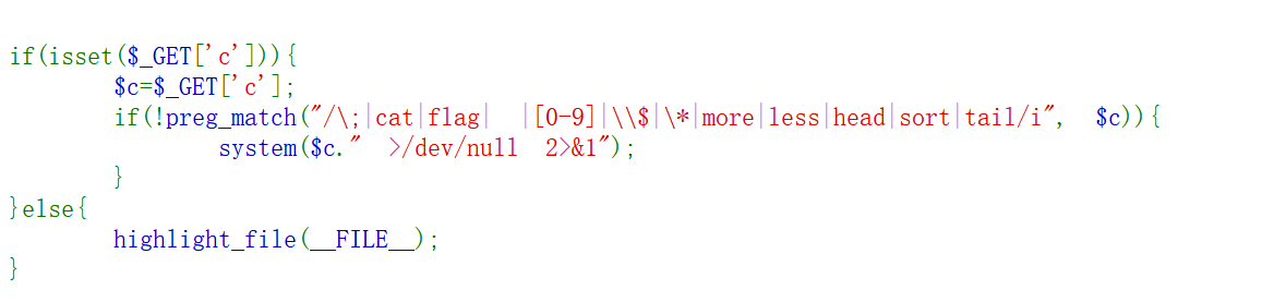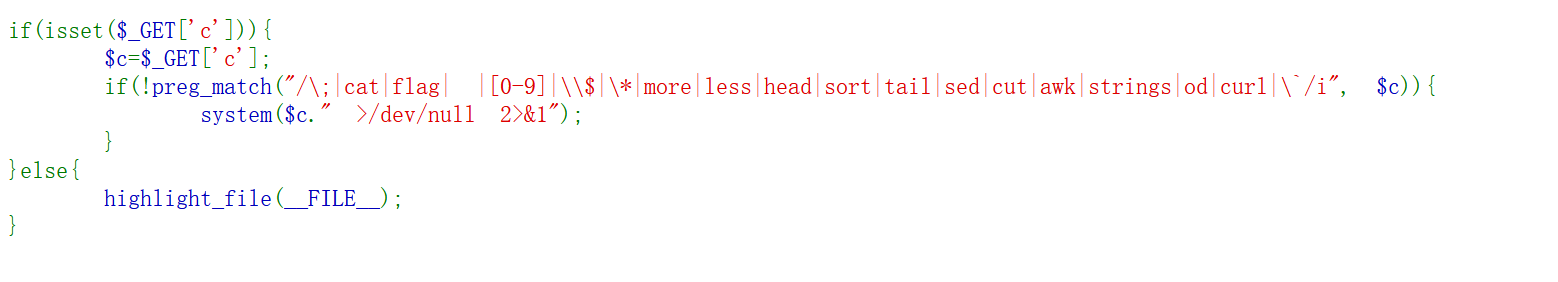 - 代码结果输出到/dev/null,可以使用;、&、||进行绕过