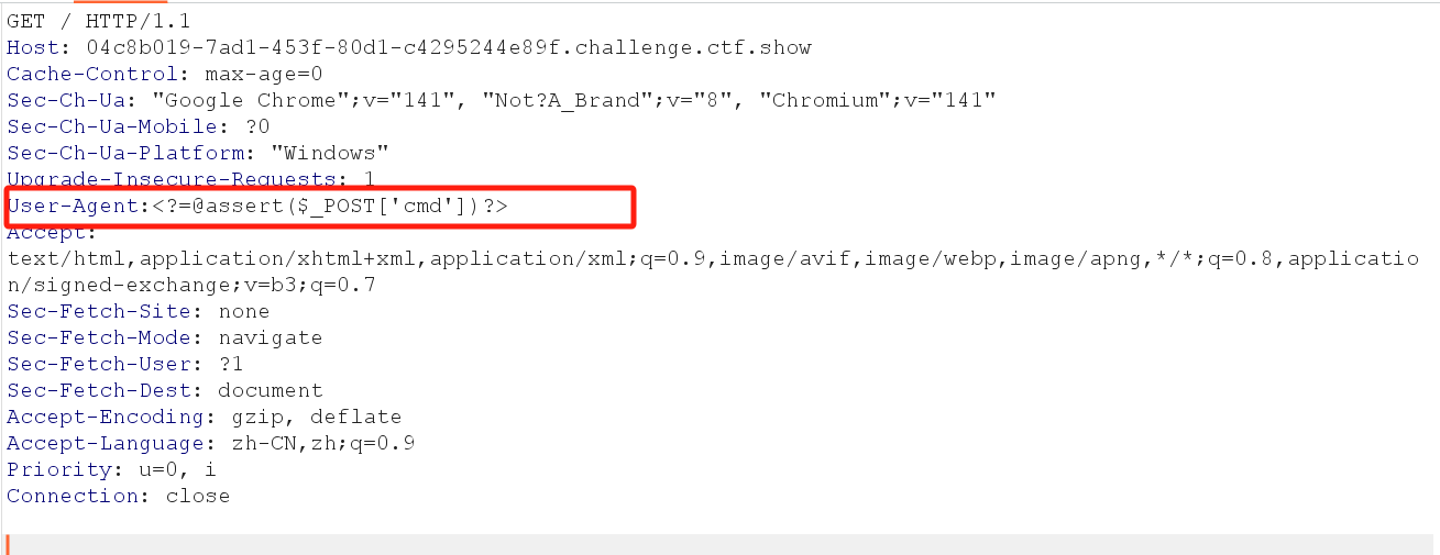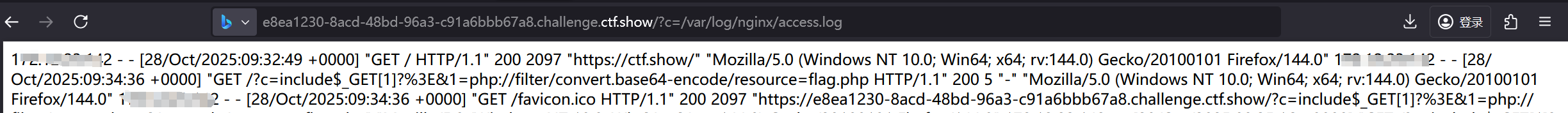 可以看到是一些User-Agent信息,那我们可以想到是否可以修改User-Agent信息能够保存到log文件里面,然后再包含这个日志文件执行里面的代码