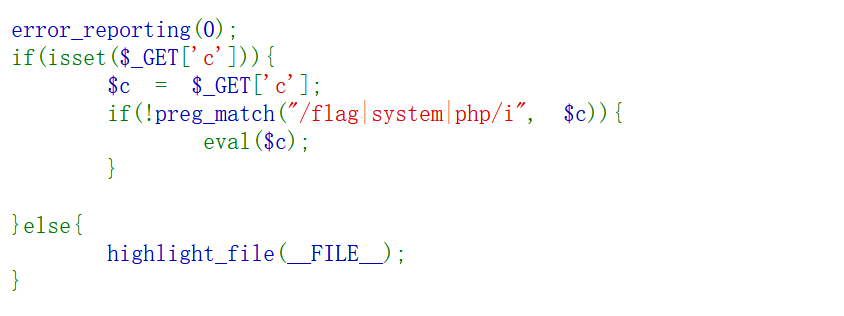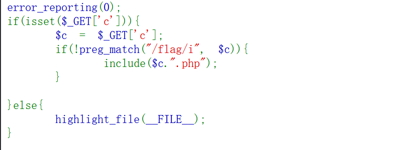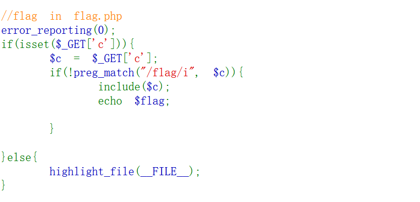 - preg_match()函数是正则表达式匹配函数,这里过滤了flag,i表示大小写不敏感