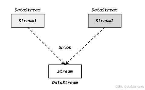 stream1.union(stream2, stream3, ...)这里需要考虑一个问题:在事件时间语义下,水位线是时间的进度标志,不同流中可能水位线的进展快慢不同,如果合并在一起,水位线要以最小的那个为准。