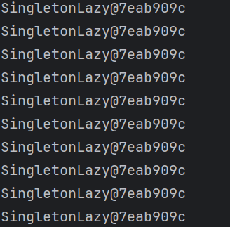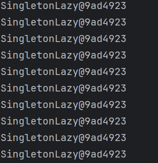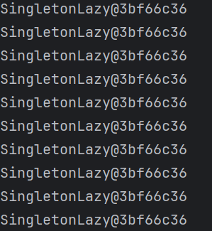 我们创建10个线程,每个线程中都获取单例对象,并且打印,观察结果