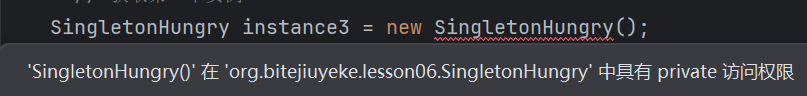 但是我们观察,此时获取对象还是依靠new SingletonHungry() 这样的方法,虽然此时返回的是同一个对象,已经实现了单例,但是代码书写有歧义