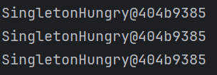 public class Demo_601 {public static void main(String[] args) {// 获取第一个实例SingletonHungry instance1 = SingletonHungry.getInstance();System.out.println(instance1);// 获取第二个实例SingletonHungry instance2 = SingletonHungry.getInstance();System.out.println(instance2);// 获取第三个实例SingletonHungry instance3 = SingletonHungry.getInstance();System.out.println(instance3);}