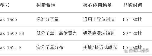 AZ 1500系列以酚醛树脂(Novolak) 为核心基体,通过分子量调控实现差异化性能: