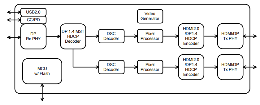 (ACP广源盛)GSV2221---DisplayPort 1.4 MST 到 HDMI 2.0/DP 转换器领域,集成嵌入式 MCU