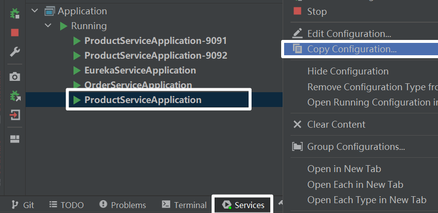public class OrderService {@Autowiredprivate OrderMapper orderMapper;@Autowiredprivate RestTemplate restTemplate;@Autowiredprivate DiscoveryClient discoveryClient;//计数器private AtomicInteger count =new AtomicInteger(1);private List<ServiceInstance> instances;@PostConstructpublic void init(){instances = discoveryClient.getInstances("product-service");}//实现负载均衡public OrderInfo selectOrderById(Integer orderId){OrderInfo orderInfo = orderMapper.selectOrderById(orderId);//计算轮流的实例indexint index=count.getAndIncrement() % instances.size();//get()+1//获得实例String uri = instances.get(index).getUri().toString();//拼接urlString url=uri+"/product/"+orderInfo.getProductId();log.info("url={}",url);ProduceInfo produceInfo = restTemplate.getForObject(url, ProduceInfo.class);orderInfo.setProduceInfo(produceInfo);return orderInfo;}}