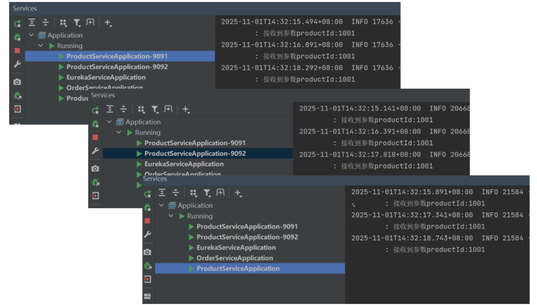 想要轮流访问这三个实例,可以获得product-Service 的列表,然后设置一个变量,这个下标等于[变量=变量%列表的长度],通过这个变量的值作为访问列表的下标值,这样就可以将每个列表里的实例进行轮询
