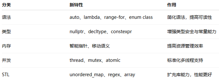 “modern C++(现代 C++)”这个概念通常是相对“经典 C++”(Classic C++)而言的,主要指从 C++11 开始的一系列语言标准,它们在语法、性能、安全性、并发等方面做出了非常大的改进。是 C++ 历史上最重大的版本更新之一,被称为 “现代C++的起点”。
