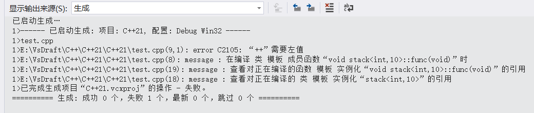 现在把之前讲模板时遗留下来的问题给解决。主要的原因还是编译和链接的时候的问题。在C语言中我们学习了编译和链接。我们知道.h文件并不会进行编译。当包有.h的文件编译时会把.h文件展开这时,test和定义文件都会有一份声明,这时test文件中的传入的参数会在test上的声明上,但是test上找不到定义。而定义的文件中有定义但是不知道声明的类型,所以也没有办法进行编译。不过我们也是有解决办法的,就是显示实例化。不过这种方法并不推荐。因为这样会使自己的代码过于臃肿。下面写一段代码大家看一下。