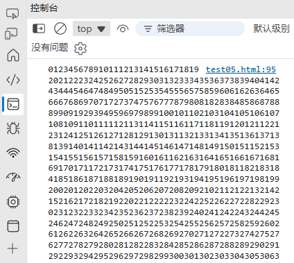 大量拼接时使用数组:// 性能差 let result = ""; for (let i = 0; i < 1000; i++) {result += i; }// 性能好 const parts = []; for (let i = 0; i < 1000; i++) {parts.push(i); } const result = parts.join("");