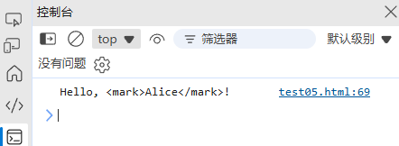 console.log(message); // "Hello, <mark>Alice</mark>!"