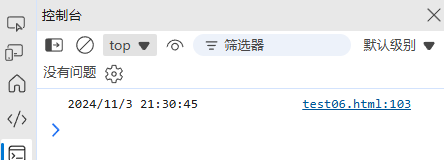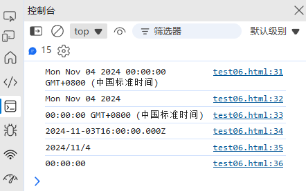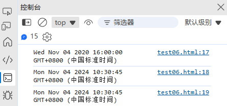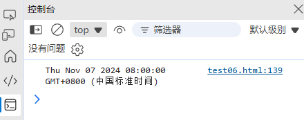 console.log(now); // 输出:Mon Nov 04 2024 10:30:45 GMT+0800 (中国标准时间)