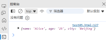 // { name: "Alice", age: "25", city: "Beijing" }