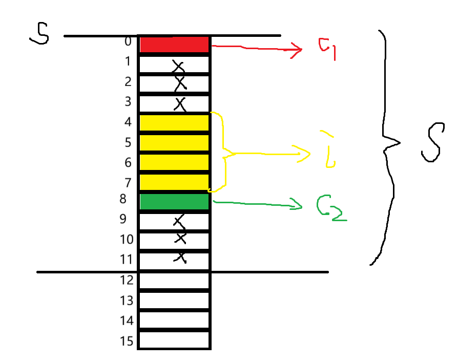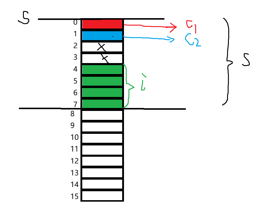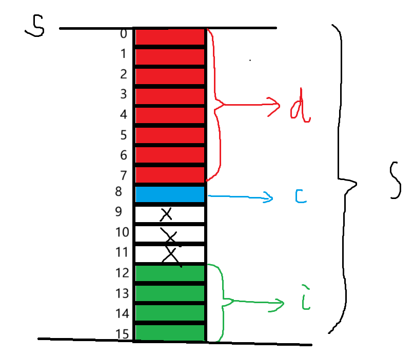 首先我们在上面提到了如果嵌套了结构体的情况,嵌套的结构体成员对齐到自己的成员中最大对齐数的整数倍处,结构体的整体大小就是所有最大对齐数(含嵌套结构体中成员的对齐数)的整数倍。那么读者可以先进行思考,然后看下我给出的示意图: