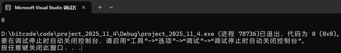那么这个代码大概的输出会是什么呢?按照我们这个计算来看,应该输出的是1+4+1=6字节,那我们输出结果试一试: